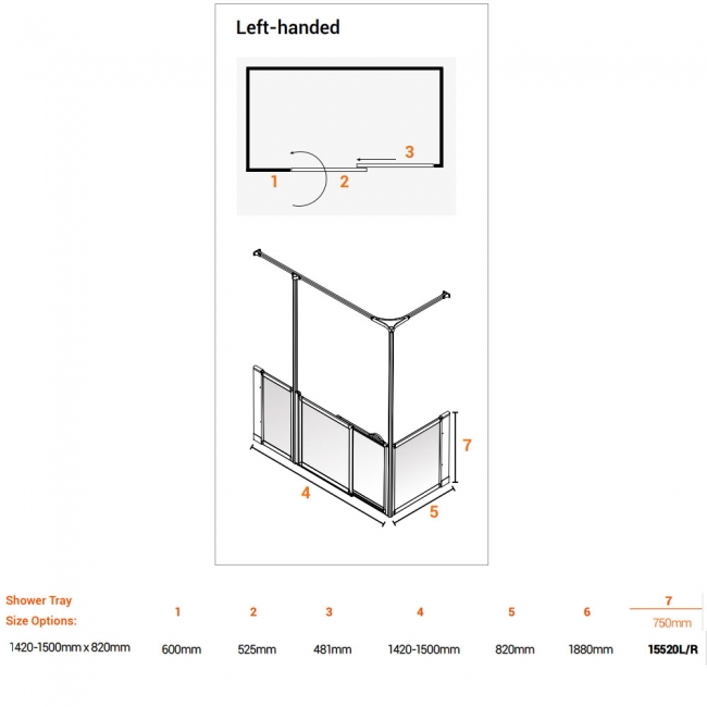 AKW Option SY Sliding Shower Screen 1400-1500mm x 820mm - Left Handed AKW Option SY Sliding Shower Screen 1400-1500mm x 820mm - Left Handed
