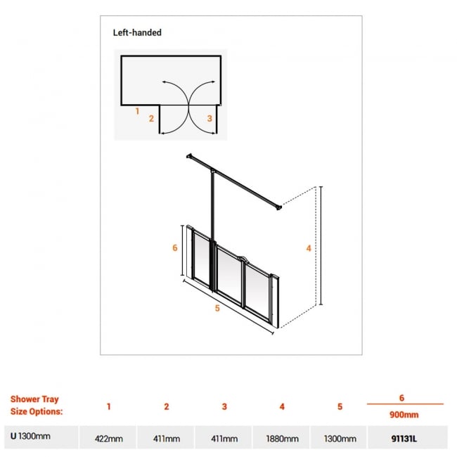 AKW Option U 900 Shower Screen 1300mm Wide - Left Handed AKW Option U 900 Shower Screen 1300mm Wide - Left Handed