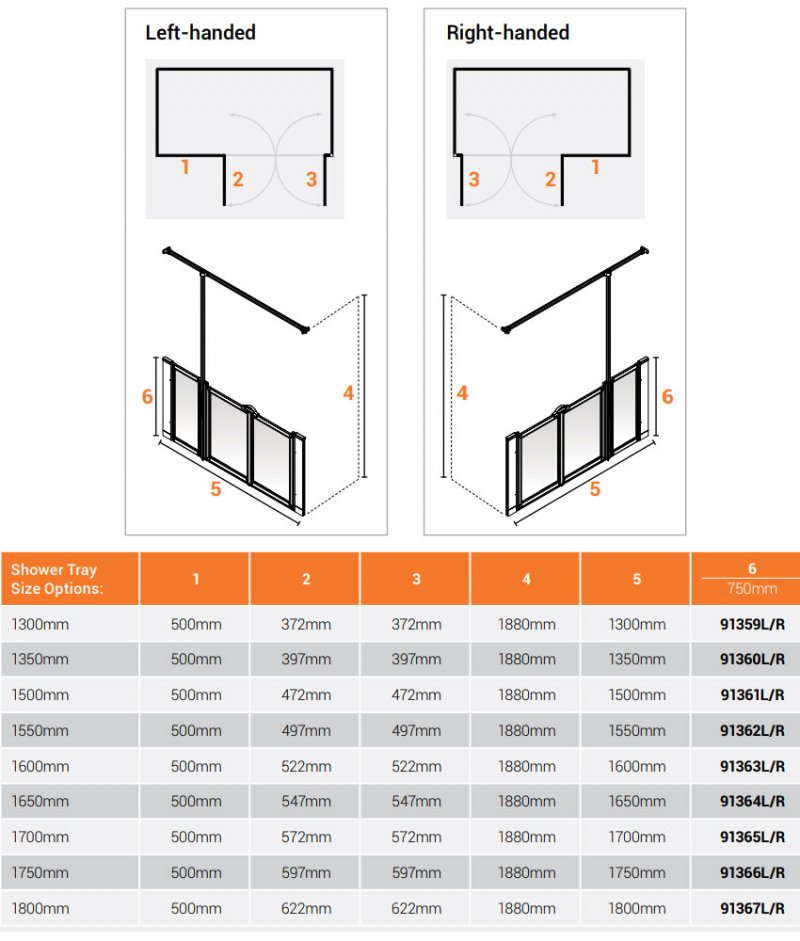 • 180 degree hinges on single doors and 360 degree hinges on bi-folding doors - Enables the doors to open both inwards and outwards providing easy access for the user in smaller bathrooms