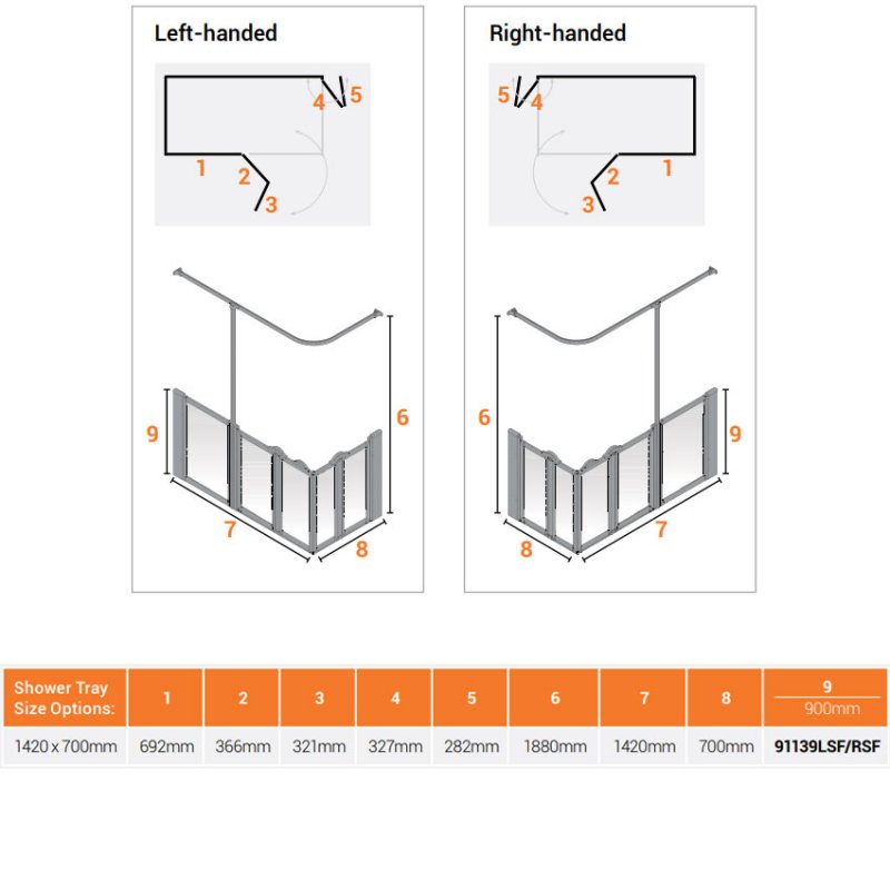AKW Option X 900 Shower Screen 1420mm x 700mm - LH Silverdale Frosted