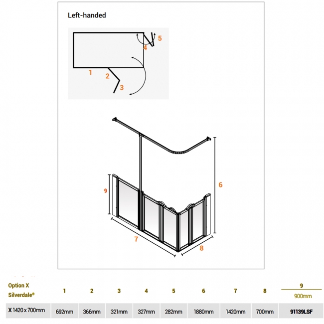 AKW Option X 900 Shower Screen 1420mm x 700mm - LH Silverdale Frosted AKW Option X 900 Shower Screen 1420mm x 700mm - LH Silverdale Frosted