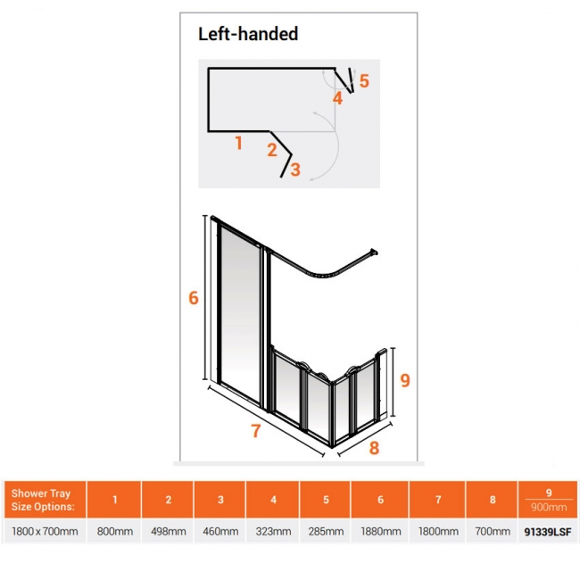 • 180 degree hinges on single doors and 360 degree hinges on bi-folding doors - Enables the doors to open both inwards and outwards providing easy access for the user in smaller bathrooms
