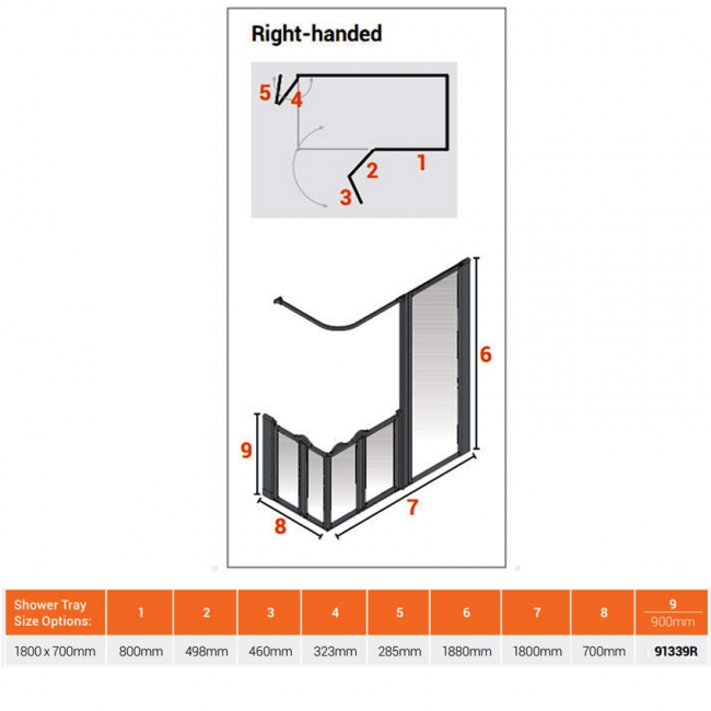 AKW Option XF 900 Shower Screen 1800mm x 700mm - Right Handed