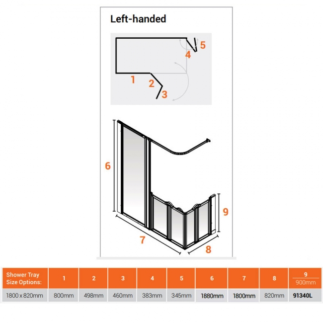AKW Option XF 900 Shower Screen 1800mm x 820mm - Left Handed | Product Image AKW Option XF 900 Shower Screen 1800mm x 820mm - Left Handed