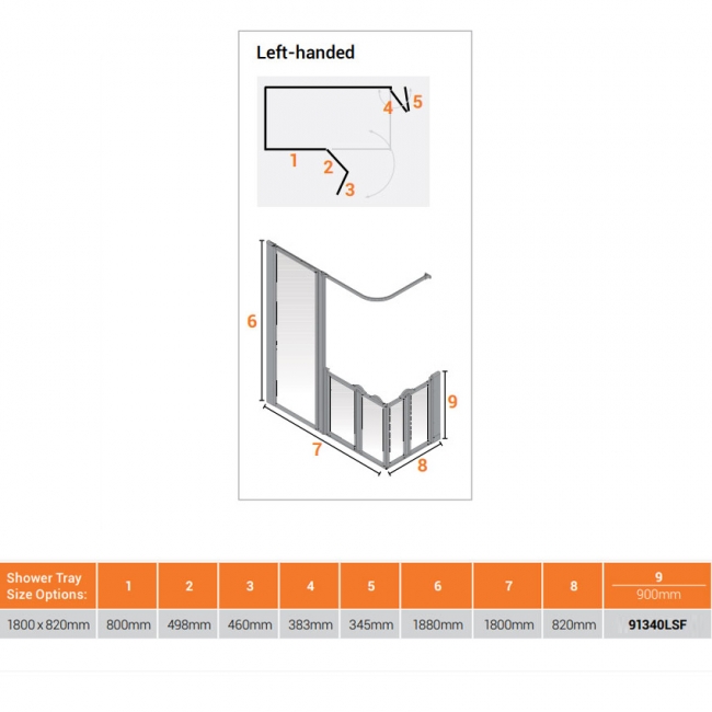 • 180 degree hinges on single doors and 360 degree hinges on bi-folding doors - Enables the doors to open both inwards and outwards providing easy access for the user in smaller bathrooms