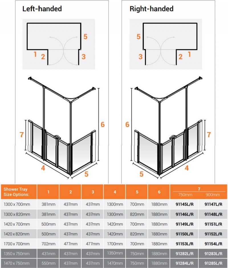 AKW Option Y 750 Shower Screen 1350mm x 750mm - Left Handed | Product Image AKW Option Y 750 Shower Screen 1350mm x 750mm - Left Handed