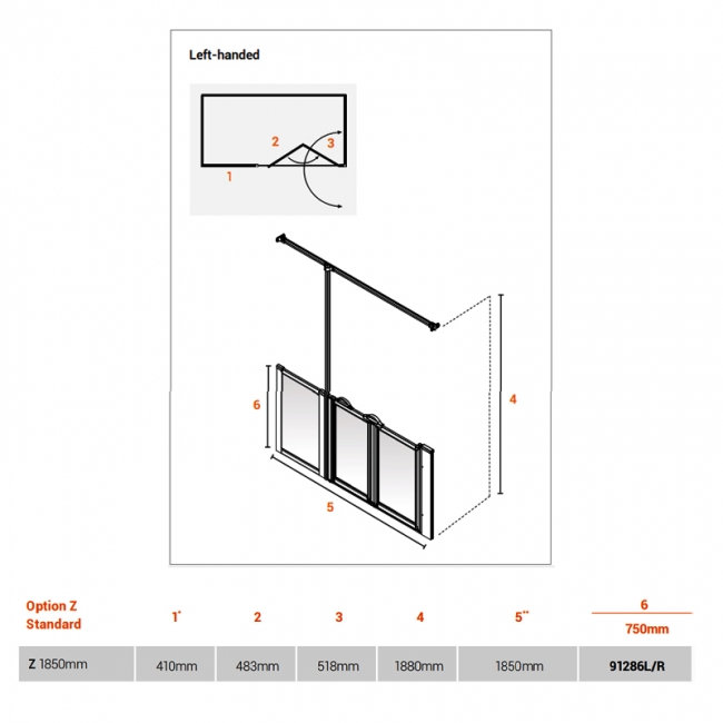 AKW Option Z 750 Shower Screen 1850mm Wide - Left Handed AKW Option Z 750 Shower Screen 1850mm Wide - Left Handed