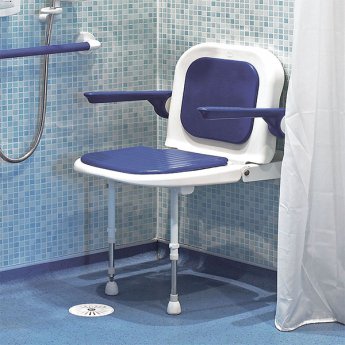 AKW 4000 Series Standard Fold Up Padded Shower Seat Blue with Back & Blue Arms