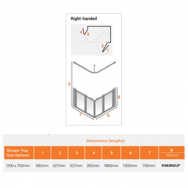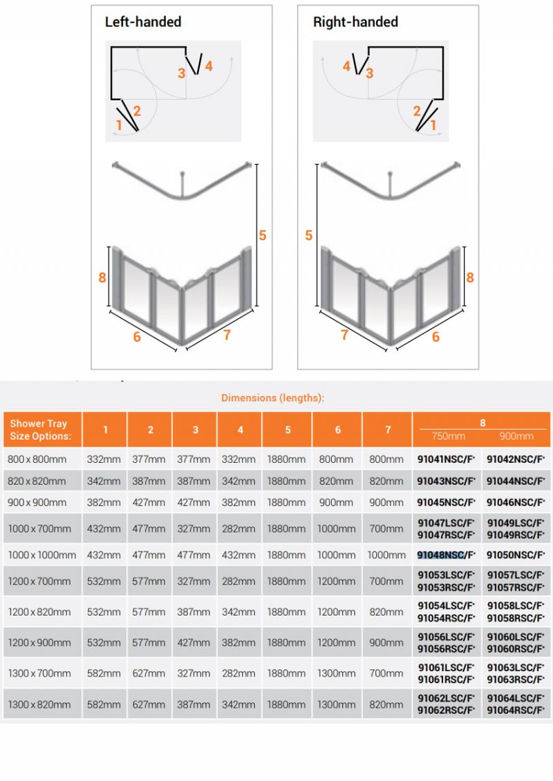 - 180 degree hinges on single doors and 360 degree hinges on bi-folding doors - Enables the doors to open both inwards and outwards providing easy access for the user in smaller bathrooms