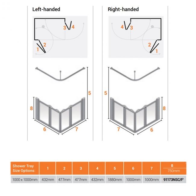 - 180 degree hinges on single doors and 360 degree hinges on bi-folding doors - Enables the doors to open both inwards and outwards providing easy access for the user in smaller bathrooms