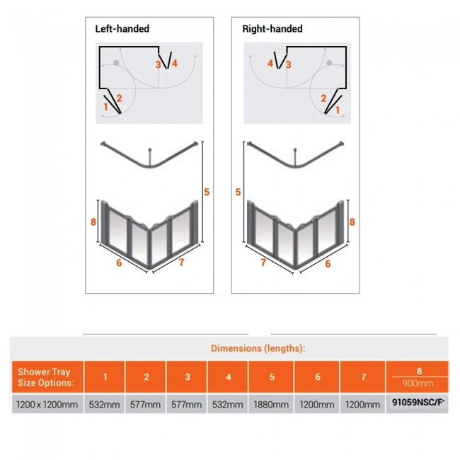 - 180 degree hinges on single doors and 360 degree hinges on bi-folding doors - Enables the doors to open both inwards and outwards providing easy access for the user in smaller bathrooms