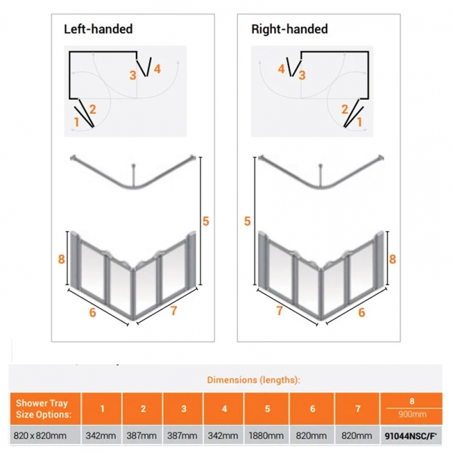 - 180 degree hinges on single doors and 360 degree hinges on bi-folding doors - Enables the doors to open both inwards and outwards providing easy access for the user in smaller bathrooms