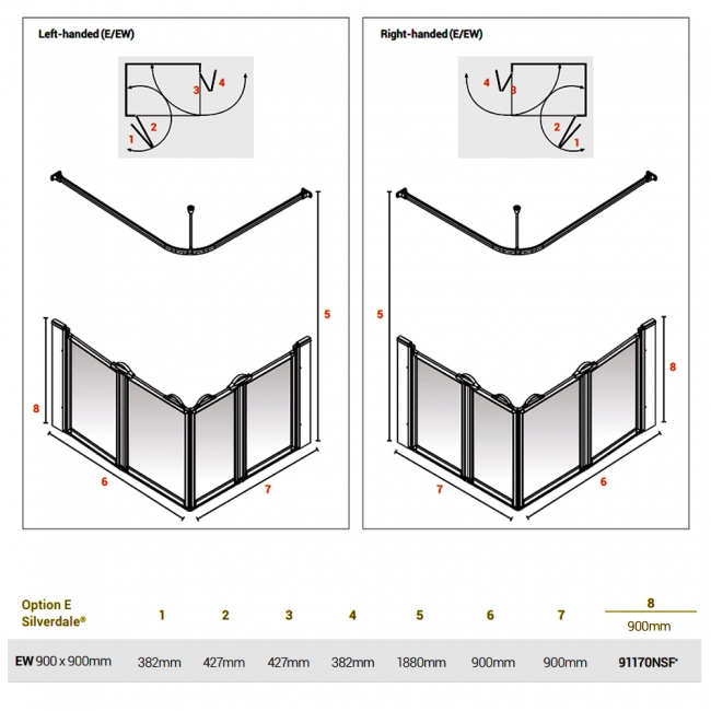 - Option EW 900 High Screen Set 900 x 900 NH - Silverdale Frosted