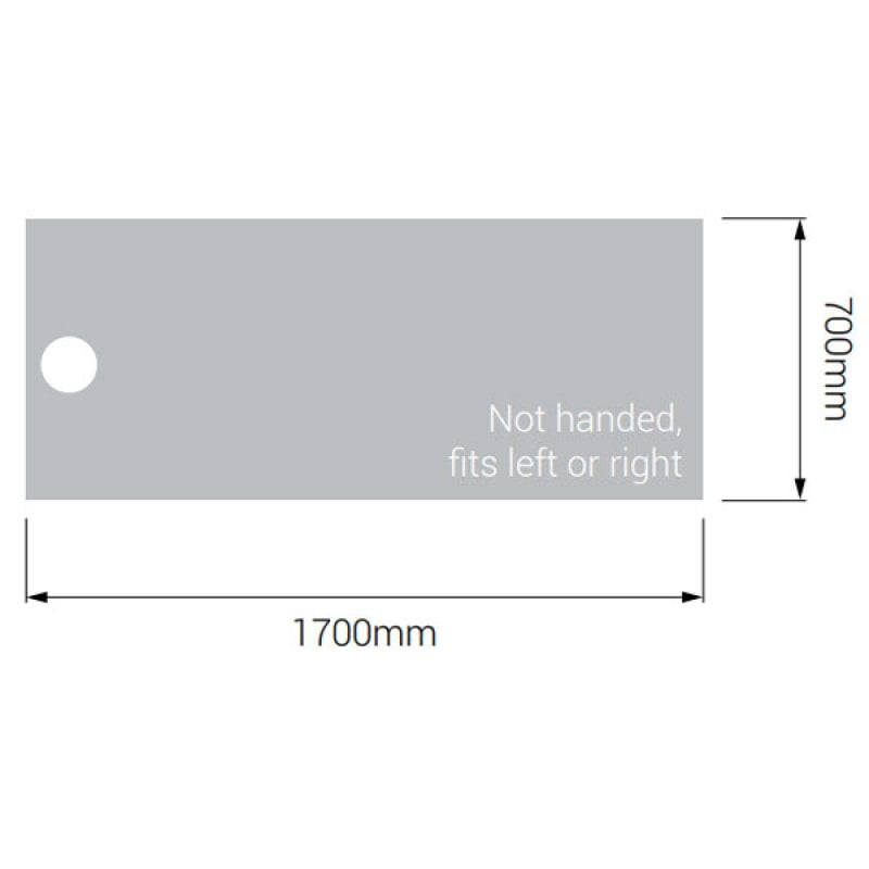 - Unbreachable floor, step-in shower tray measuring 1700mm x 700mm