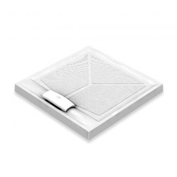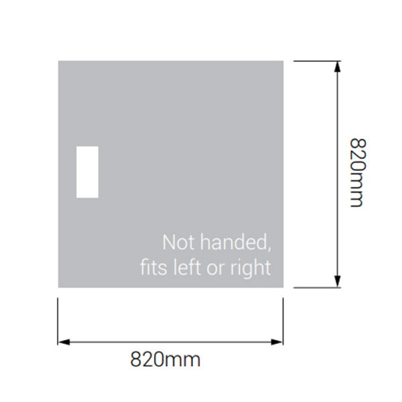 - Step-in, unbreachable floor shower tray measuring 820mm x 820mm (90mm High)