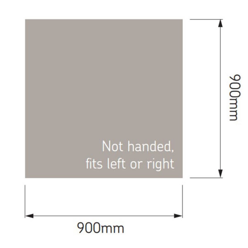 - Step-in, unbreachable floor shower tray measuring 900mm x 900mm (90mm High)