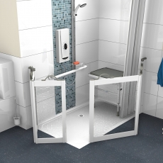 • Provides a practical, corner entry showering solution for users with mobility difficulties