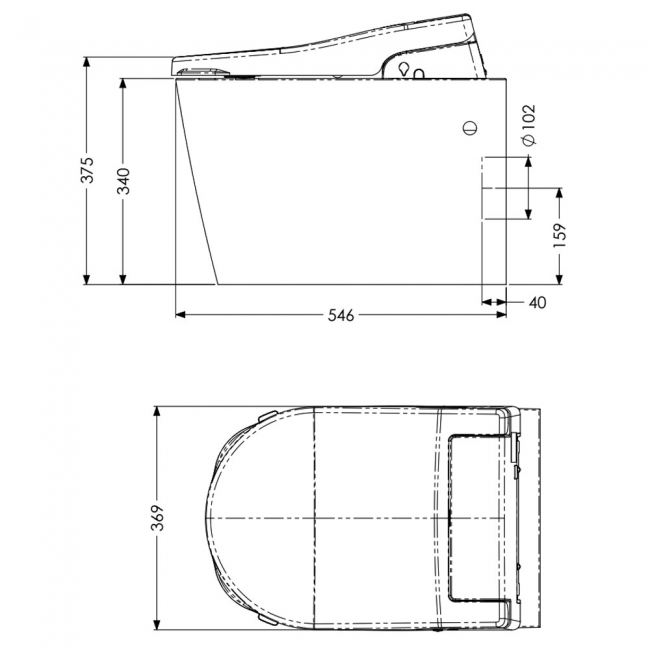 • Rimless toilet pan with direct flushing technique offers improved hygiene by reducing the build-up of bacteria and making cleaning easier