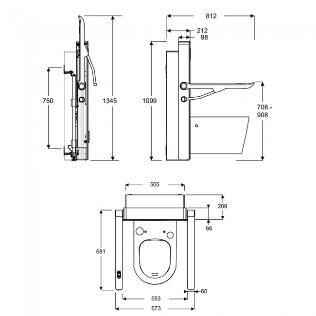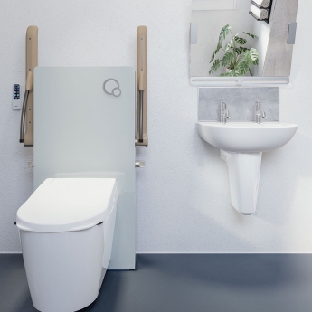 • Easy-to-use up/down buttons on right-handed arm raise and lower the toilet pan to users' individual requirements, ideal for those living in multi-generational or multi-user households