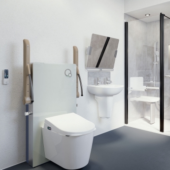 • Arms can support up to 18.8st (120kg) each and can be utilised to help users with safely navigating around the bathroom