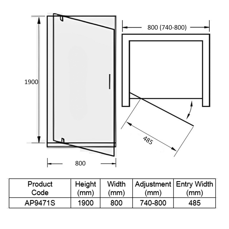 Ella Pivot Shower Door - 5mm Glass | Product Image