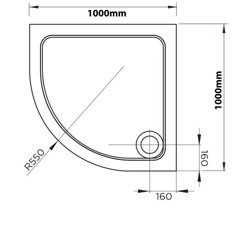 - Curved quadrant shower tray measuring 1000mm x 1000mm