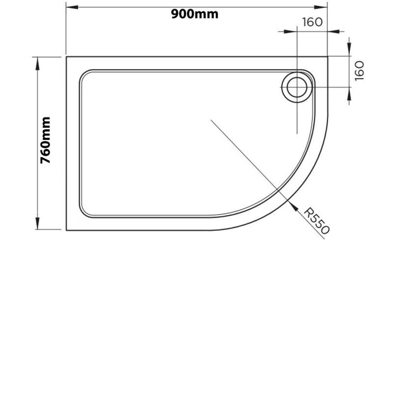 - Offset quadrant shower tray measuring 900mm x 760mm