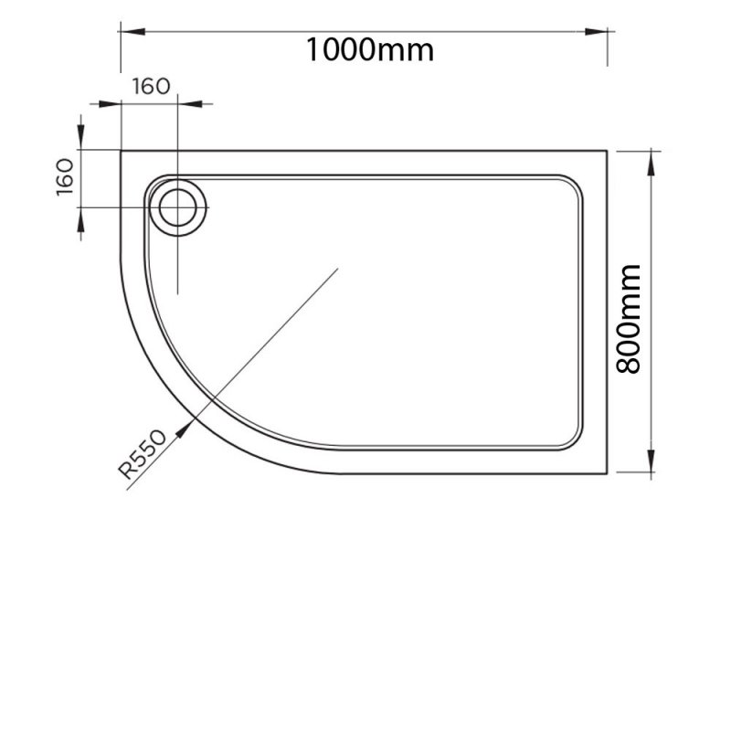 April Stone Resin 45mm Offset Quadrant Shower Tray - 1000mm x 800mm - Left Handed