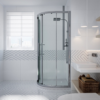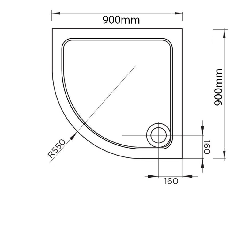 - Curved quadrant shower tray measuring 900mm x 900mm