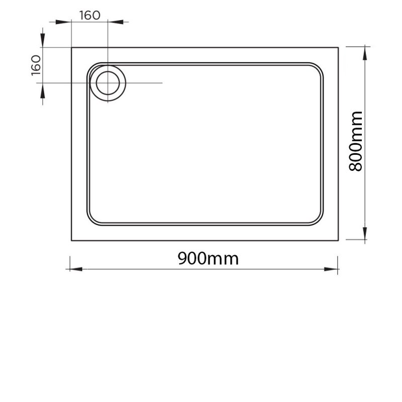 - Rectangular shower tray measuring 900mm x 800mm