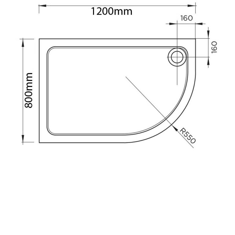 - Offset quadrant shower tray measuring 1200mm x 800mm