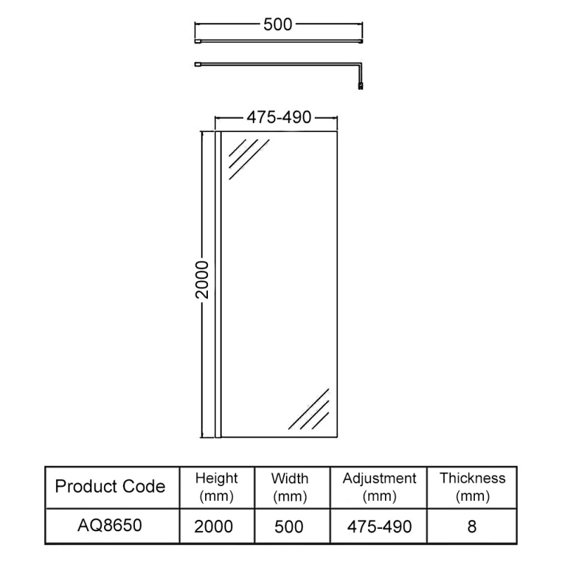 Merlyn 8 Series 2000mm Wet Room Glass Shower Screen | Product Image