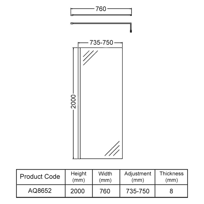 Merlyn 8 Series 2000mm Wet Room Glass Shower Screen | Product Image
