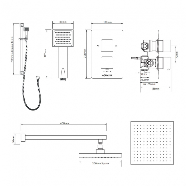 Aqualisa AQ Thermostatic Concealed Square Mixer Shower with Fixed Head and Shower Kit - Chrome Aqualisa AQ Thermostatic Concealed Square Mixer Shower with Fixed Head and Shower Kit - Chrome