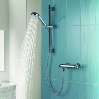 The Aqualisa Midas 100 Thermo Exposed Bar Mixer Shower with Adjustable Kit is from the fantastic range of showers by Aqualisa. For a cost-effective shower system to satisfy your everyday showering requirements, look no further than the Aqualisa Midas 100 Thermo Exposed Bar Mixer Shower with Adjustable Kit. The exposed valve is finished in chrome, giving it a durable and sleek look.