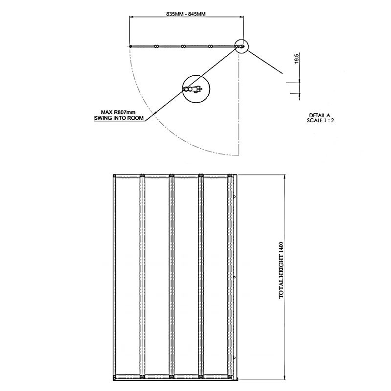 Verona Aquaglass+ Four Folding Bath Screen 1400mm H x 800mm W - 3mm Glass | Product Image