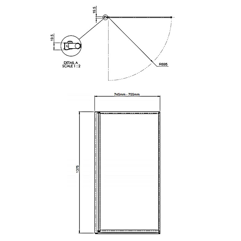 Carron QSS-2 Quantum Shower Hinged Bath Screen 1440mm H x 810mm W - 6mm Glass