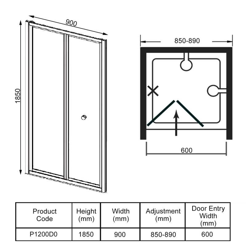 Shower Door Width900mm