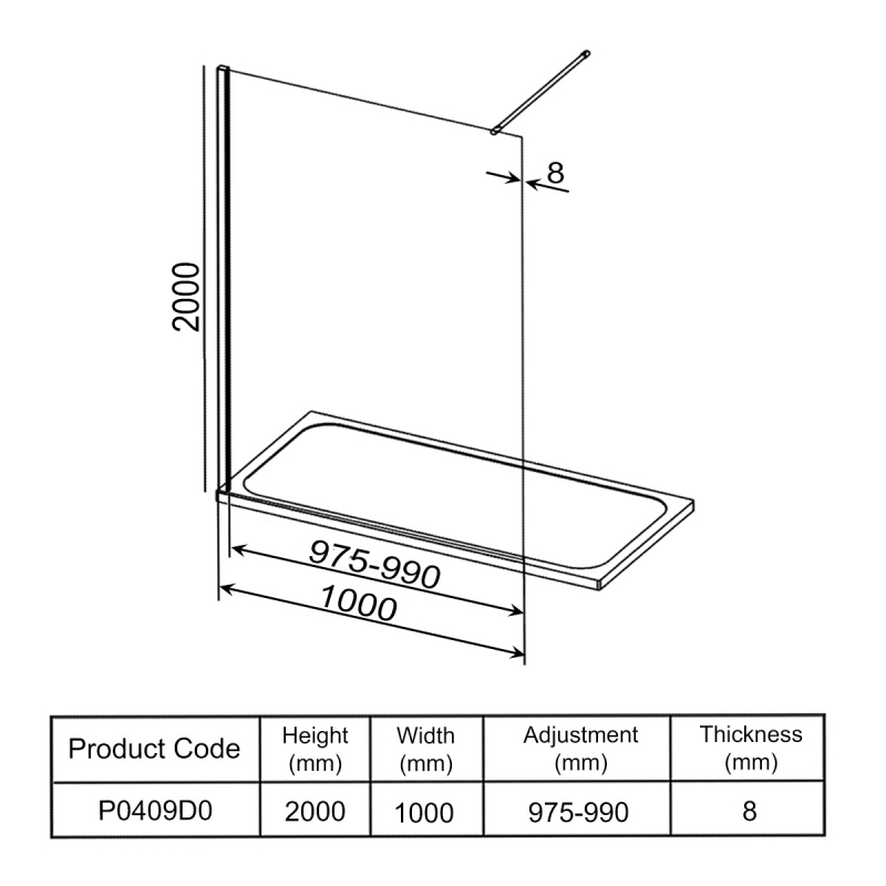 • Minimalist wet room shower screen available in 9 different front panel sizes