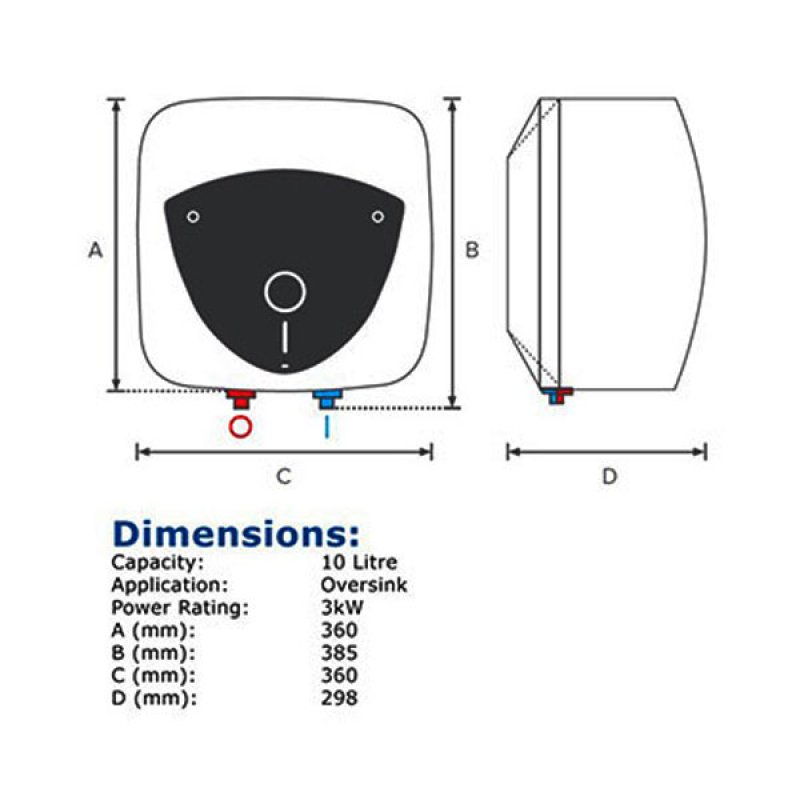 The Ariston Andris Lux 10L Over-sink Unvented Electric Water Heater, 3kw with advanced technologically, Versatile mains pressure water heater is ideal for localised use. Ariston has taken the very best in unvented electric water heating and made it even better. More energy efficient, more accurate, more compact the sophisticated new design encases an evolution in electric water heating. With a range of capacities from 10 to 30 litre units, the Andris Lux range is the cutting edge in water heating.