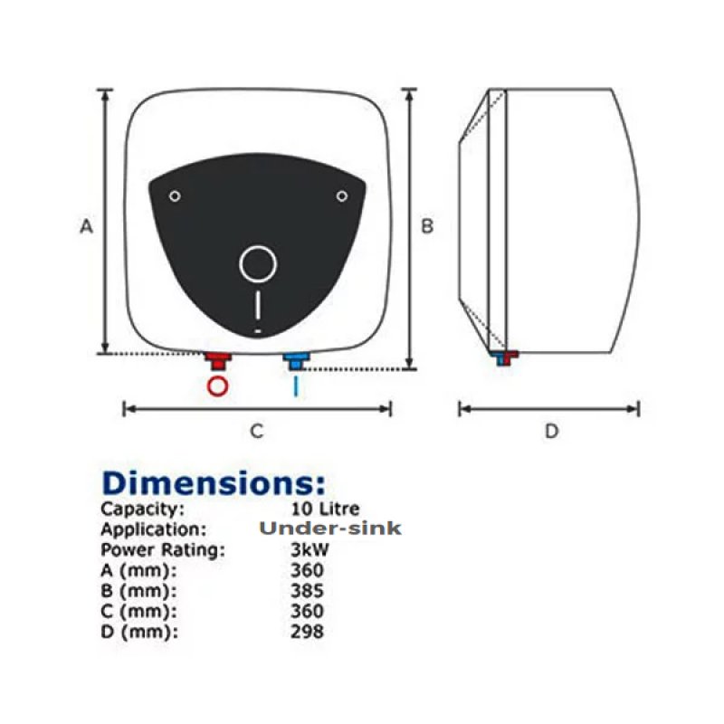 The Ariston Andris Lux 10L Under-sink Unvented Electric Water Heater, 3kw with advanced technologically, Versatile mains pressure water heater is ideal for localised use. Ariston has taken the very best in unvented electric water heating and made it even better. More energy efficient, more accurate, more compact the sophisticated new design encases an evolution in electric water heating. With a range of capacities from 10 to 30 litre units, the Andris Lux range is the cutting edge in water heating.