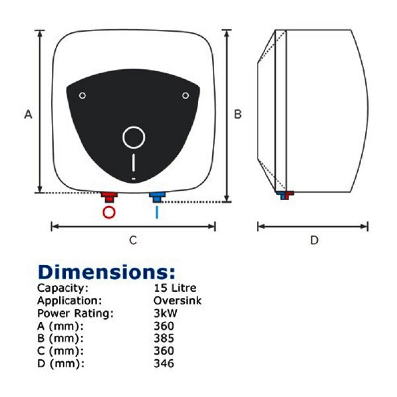 The Ariston Andris Lux 15L Over-sink Unvented Electric Water Heater, 3kw with advanced technologically, Versatile mains pressure water heater is ideal for localised use. Ariston has taken the very best in unvented electric water heating and made it even better. More energy efficient, more accurate, more compact the sophisticated new design encases an evolution in electric water heating. With a range of capacities from 10 to 30 litre units, the Andris Lux range is the cutting edge in water heating.