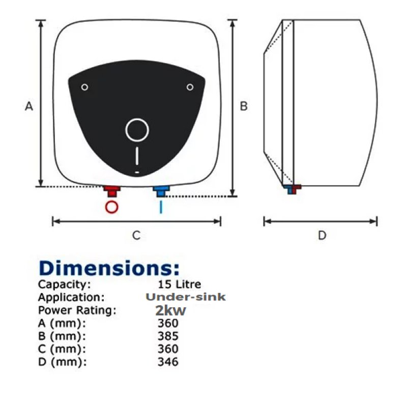 The Ariston Andris Lux 15L Under-sink Unvented Electric Water Heater, 2kw with advanced technologically, Versatile mains pressure water heater is ideal for localised use. Ariston has taken the very best in unvented electric water heating and made it even better. More energy efficient, more accurate, more compact the sophisticated new design encases an evolution in electric water heating. With a range of capacities from 10 to 30 litre units, the Andris Lux range is the cutting edge in water heating.