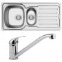 Delphi Trade 1.5 Bowl Stainless Steel Kitchen Sink 1000mm L x 500mm W inc Tap and Waste | Product Image Delphi Trade 1.5 Bowl Stainless Steel Kitchen Sink 1000mm L x 500mm W inc Tap and Waste