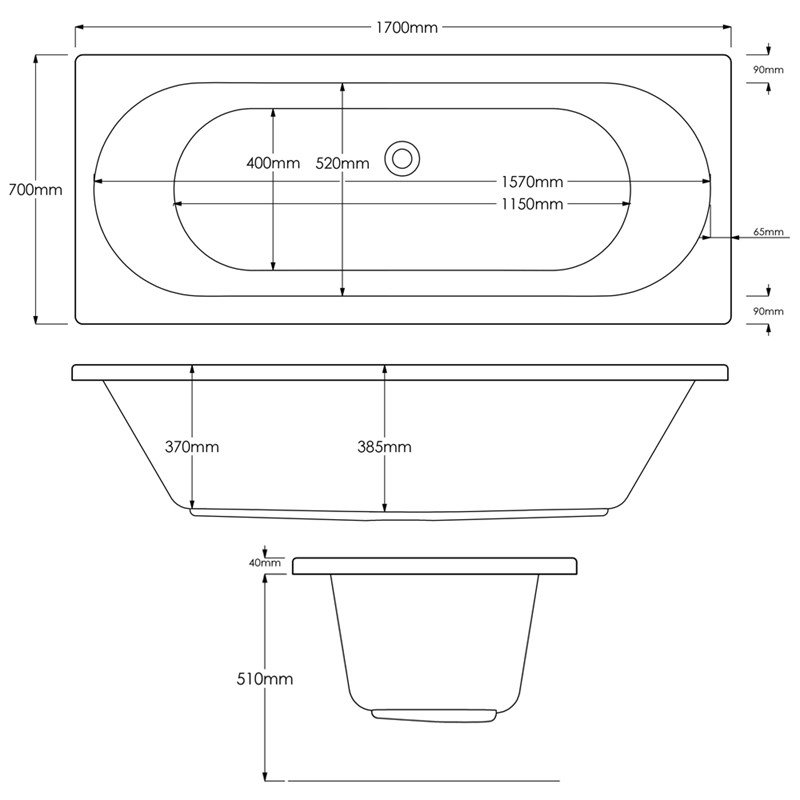 • Double ended design - waste positioned in side of tub, allowing relaxation at both ends