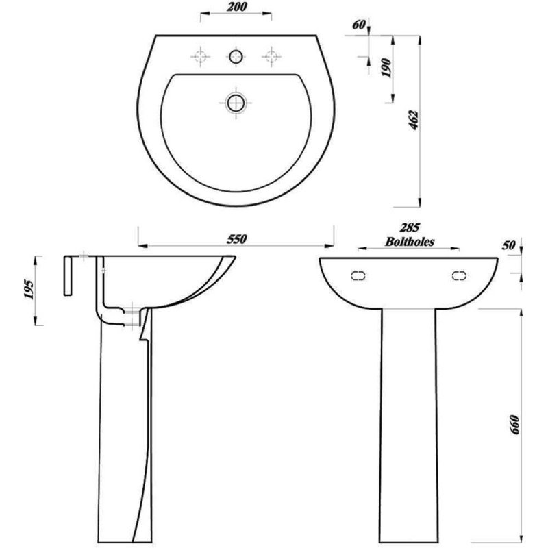 Delphi Trade Basin with Full Pedestal In A Box 550mm Wide - 1 Tap Hole