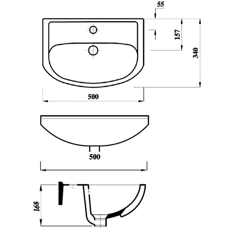 Signature Indus Semi-Recessed Basin 500mm Wide - 1 Tap Hole