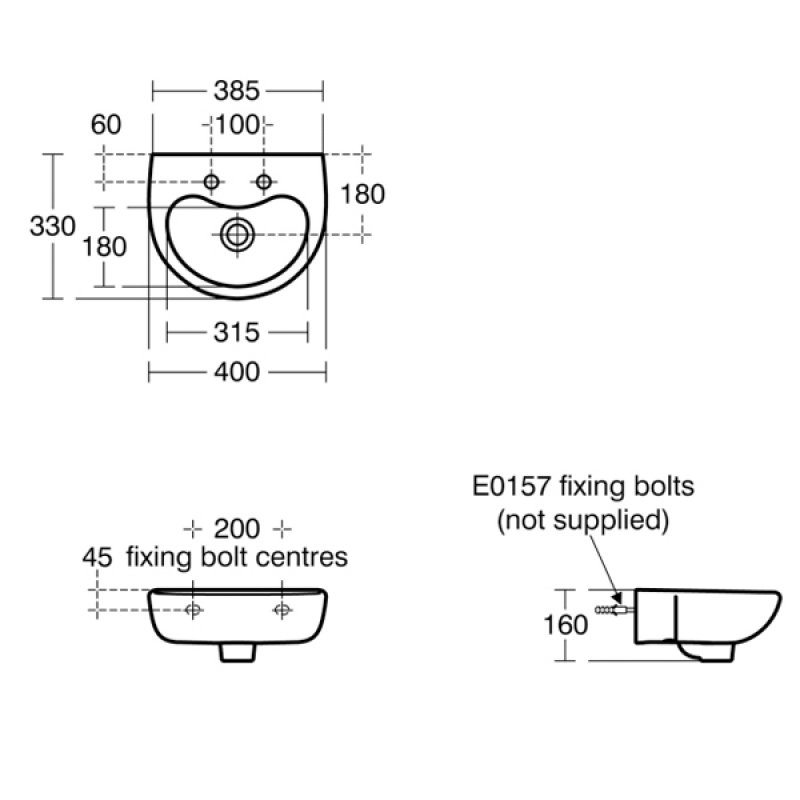 • Basin includes two tap hole - suitable for a standard pair of basin taps or basin mixer taps