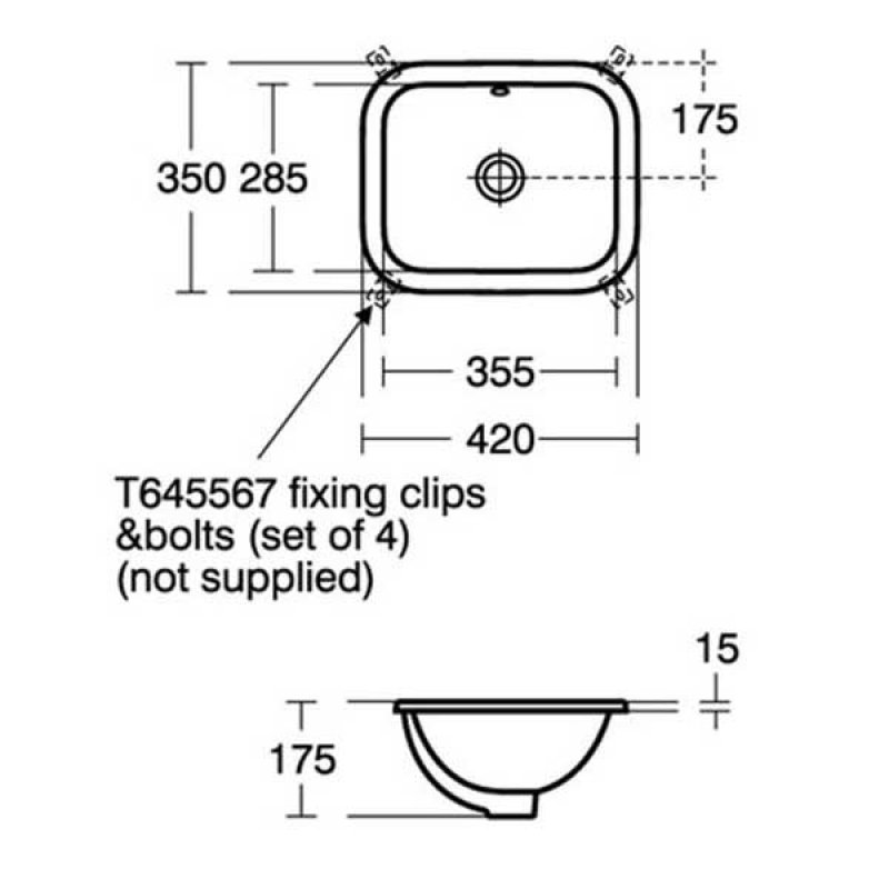 • Washbasin mounted on underside of countertop using fixing clips provided