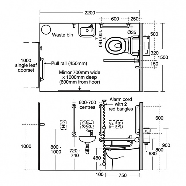 • Supplied with layout drawings, detailing the fixing positions necessary for Doc M compliance
